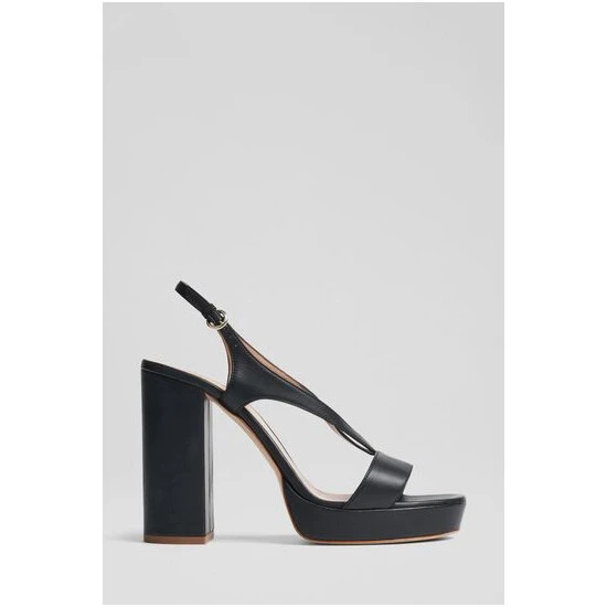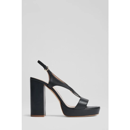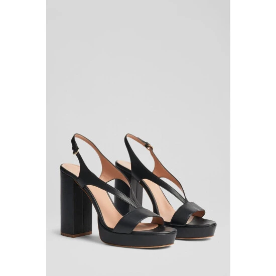 | The Gigi platform sandals are crafted in Italy from nappa leather. They have a strap over the toes, a V-strap up the foot, a buckled slingback, a platform sole and a 110mm block heel. |