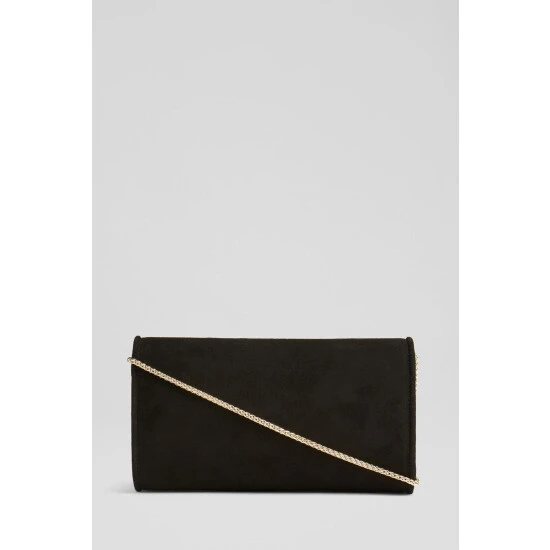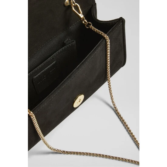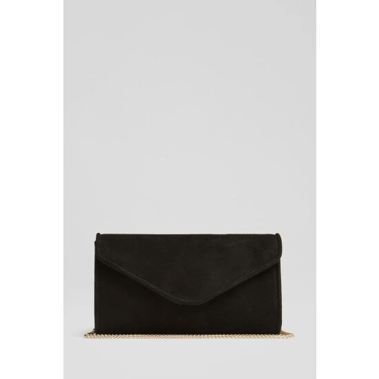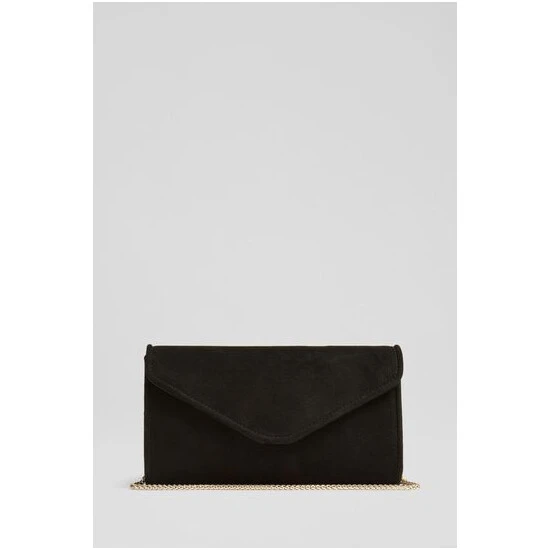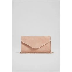 The Dominica clutch bag is crafted in Spain from suede. It's an envelope clutch with a piped trim and fastens with a hidden press stud.