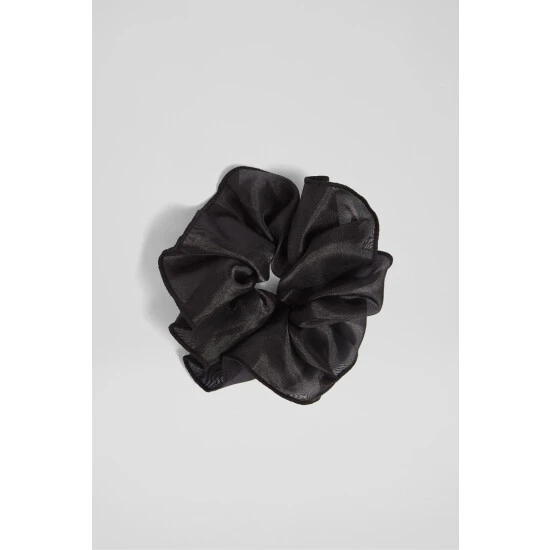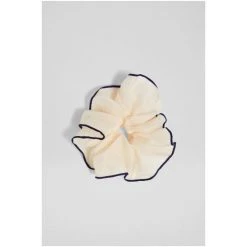 The Vivian scrunchie is crafted from sheer organza finished with a navy stitched trim.