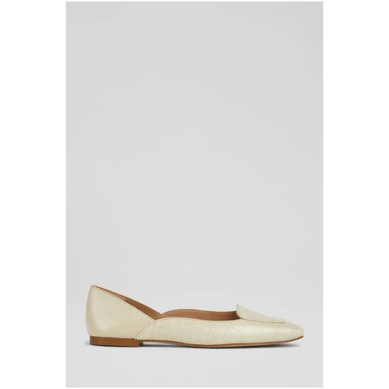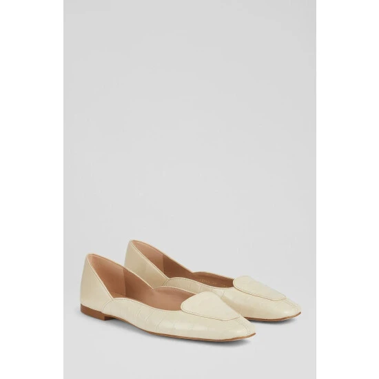 The Willow pumps are crafted in Spain. They have a square toe, loafer styling, a scalloped side cut and a small flat heel.
