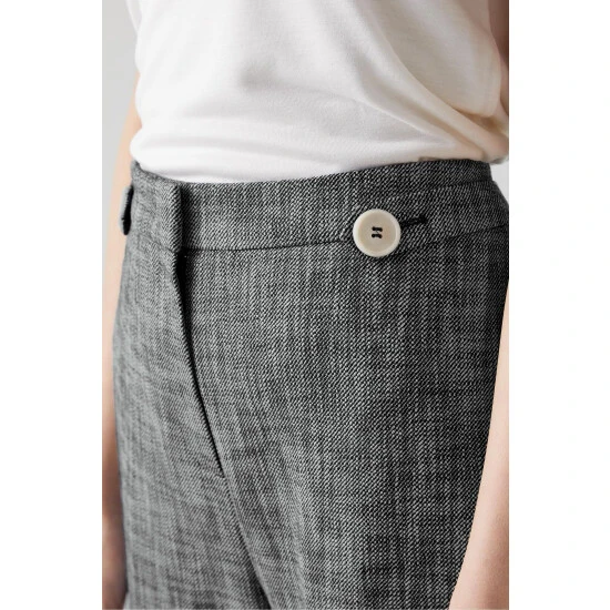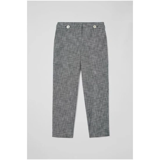 The Zurich trousers are crafted in Portugal from super-light and soft blue denim. They sit on the waist with cream button detail, have a zip fly, side pockets, centre creases and a cropped, cigarette cut.